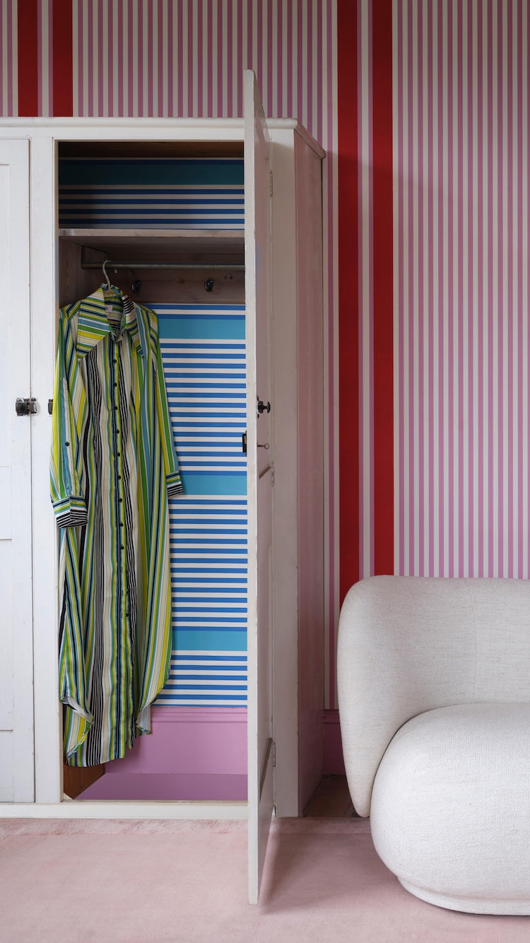 A modern reimagining of a timeless favourite, Stripe adds new energy to a classic design. Its bold, wide bands create a striking yet adaptable look that can be hung in multiple ways, offering endless possibilities for both traditional and contemporary spaces.